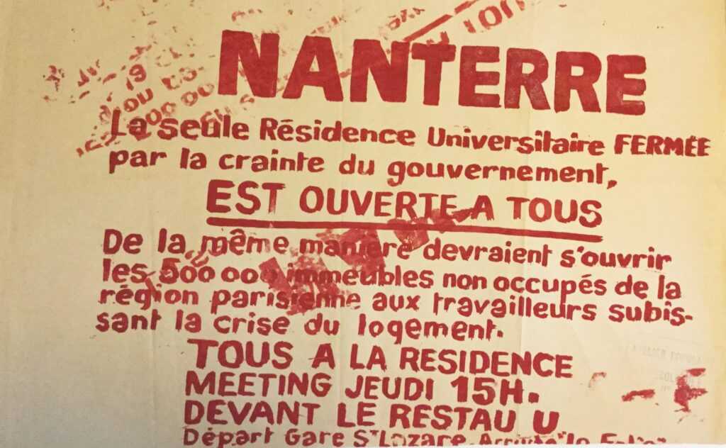 Sedan ett antal ledare för den radikala Vietnamrörelsen gripits av polisen den 22 mars, ockuperade ett hundratal studenter Nanterres administrativa lokaler och beslöt att gå vidare med en aktionsdag i slutet av mars, då den normala undervisningen skulle ersättas med iskussioner om studenternas kamp. Detta var början till 22 mars-rörelsen, som skulle komma ett spela en betydelsefull roll för studentrörelsens fortsatta utveckling.