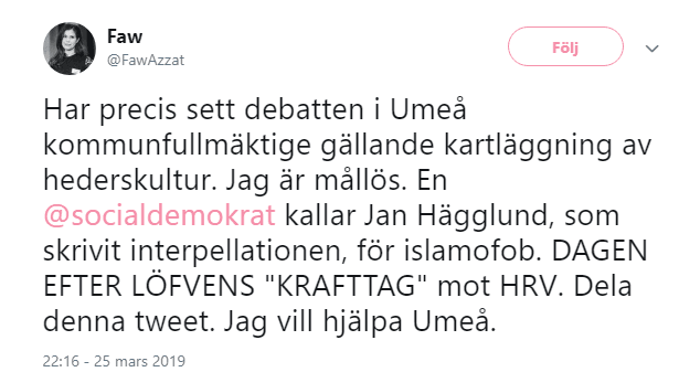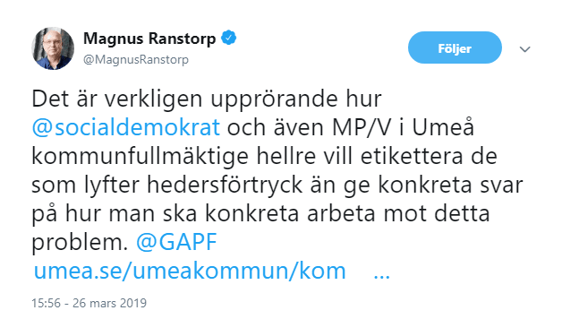 De rent häpnadsväckande uttalandena som en rad ledamöter för Socialdemokraterna i Umeå kommunfullmäktige (men även MP och V) fällde i samband med en debatt om hedersförtryck den 25 mars orsakade en s.k. twitterstorm. Här listar vi några av reaktionerna.