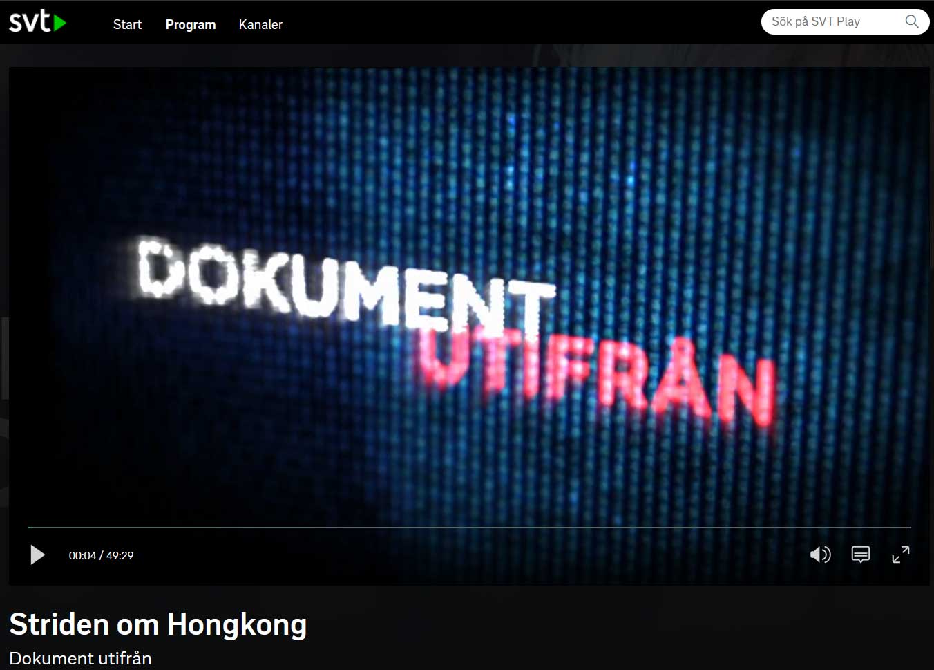 Vi rekommenderar detta program från Dokument Utifrån om proteströrelsen i Hongkong. Programmet är tillgängligt till den 30 september 2020.