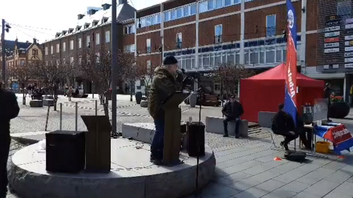 För att upprätthålla säkerhetsavstånd vid vårt bokbord har partiet tillverkat plexiglasskärmar liknande de som finns vid kassan på ICA och Coop. Dessa sattes upp på bokbordet. I samband med det första torgmötet, som du kan se video ifrån nedan, var stämningen något avvaktande. Vädret var fint och många stod och lyssnade. Men konkurrens från en korvgubbe innebar att vi inte kunde ställa bordet på bästa platsen. Dessutom var vi väldigt försiktiga för att undvika smittspridning.