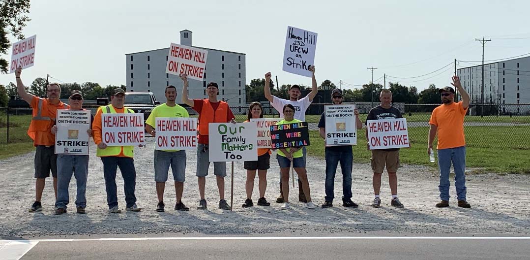 Strejkande whisky-bryggare i Kentucky. En av många strejker som svept över USA under året. Foto: UFCW