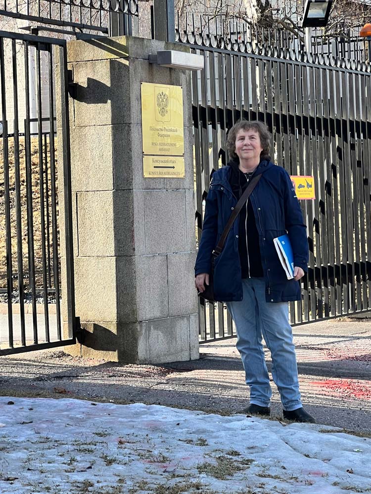 * Protestvykort mot kriget överlämnade till Rysslands ambassad!
